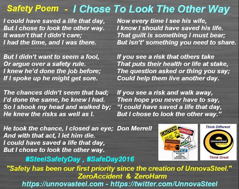 Unnovasteel On Twitter Safety Poem I Chose To Look The Other Way Hsmmagazine Safeday Healthandsafety Steelsafetyday Safeday2016 Https T Co Hilpm3iger Twitter